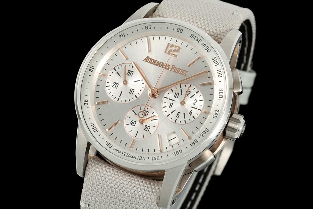 4. Paired with an ergonomically curved bezel-set bracelet and the new AP pin buckle, the case hugs the wrist with a substantial yet exceptionally comfortable fit.