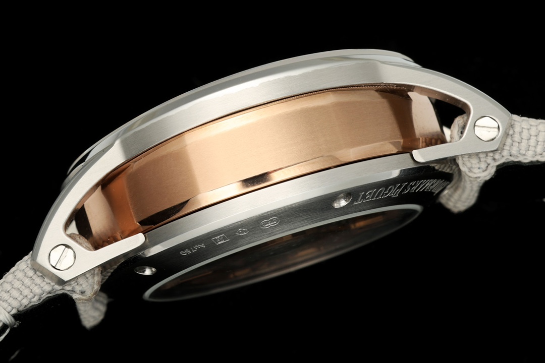 1. Curved triple-piece case with sharp lines; the openworked lugs present a high manufacturing complexity.