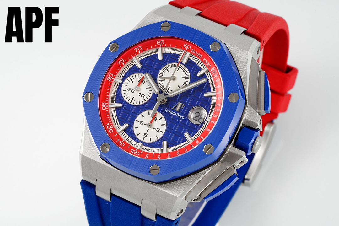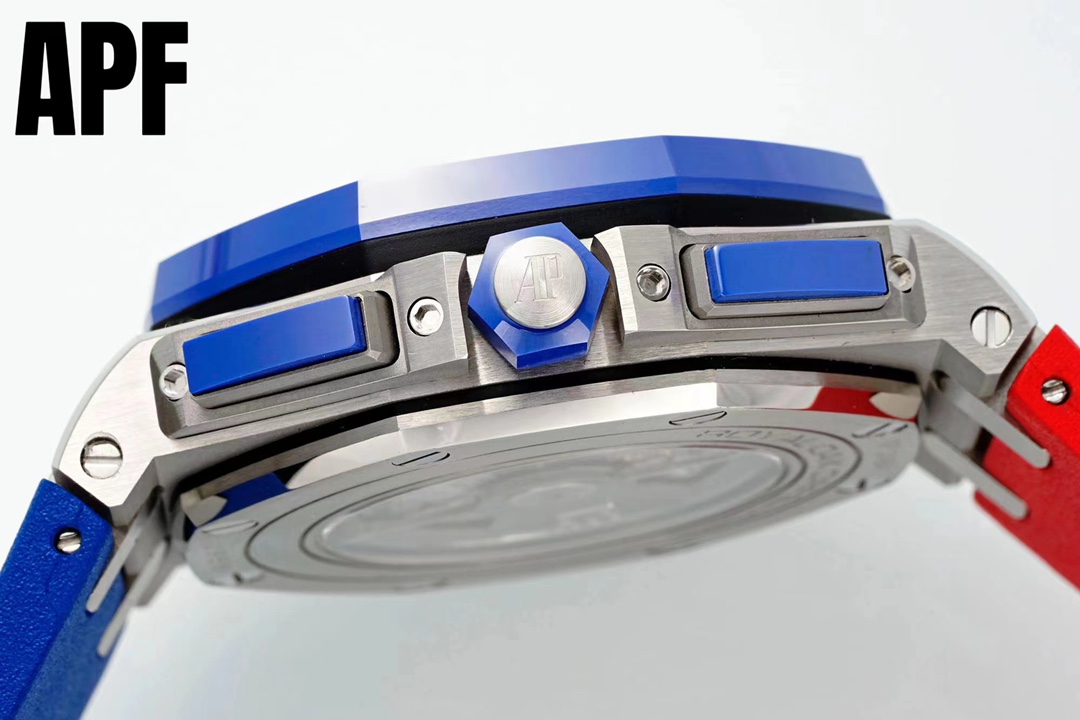 The all-new upgraded “Summer Bestseller” Audemars Piguet Royal Oak Offshore 26470 Series 42mm watch surpasses all existing versions on the market. This ultimate masterpiece eliminates any risk of being instantly recognized as a fake. Building upon the original design, we have dedicated ourselves to research and development, breaking through barriers. “Breaking through original factory barriers, synchronized with the authentic exclusive chronograph model featuring a removable crown cap” ensures maximum wrist conformity upon wearing, significantly enhancing comfort while eliminating the embarrassment of obvious counterfeits. APF Factory genuinely prioritizes every watch enthusiast's perspective: 1. Case and bezel crafted from imported zirconia ceramic—forged under extreme pressure and temperature to achieve ultra-dense, pigment-free color. 2. Employing cutting-edge CNC polishing technology to flawlessly refine every angle of the case. 3. Each hexagonal screw sits perfectly flush with the bezel, tolerating no protrusions or depressions—truly embodying top-tier replica artistry. 4. The dial features Audemars Piguet's iconic large guilloche pattern as its backdrop. The distinctly layered square grid arrangement, meticulously polished, showcases the craftsman's skill to perfection. 5. The crystal employs double-sided sapphire glass, paired with a natural rubber strap. 6. The movement employs the original 3126 chronograph caliber, featuring a 12-hour sub-dial at 6 o'clock, a 30-minute counter at 9 o'clock, and a small seconds display at 12 o'clock. Every function of the original is flawlessly reproduced. Each APF factory watch undergoes manual quality control to ensure movement stability, achieving truly impeccable performance. We welcome all watch enthusiasts to appreciate this masterpiece.