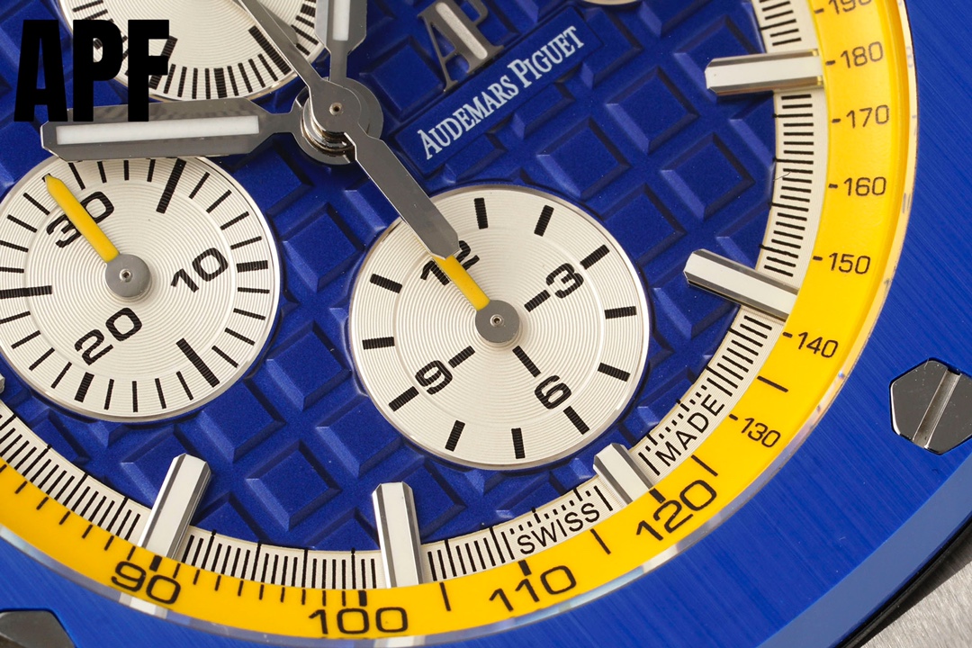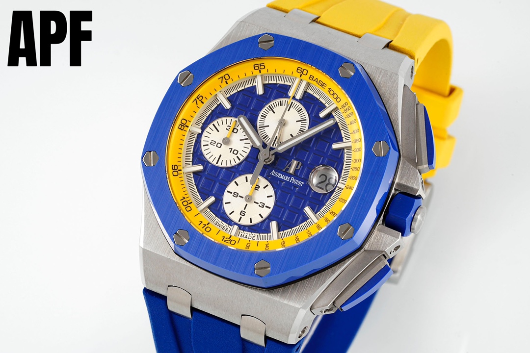 The all-new upgraded “Summer Bestseller” Audemars Piguet Royal Oak Offshore 26470 Series 42mm watch surpasses all existing versions on the market. This ultimate masterpiece eliminates any risk of being instantly recognized as a fake. Building upon the original design, we have dedicated ourselves to research and development, breaking through barriers. “Breaking through original factory barriers, synchronized with the authentic exclusive chronograph model featuring a removable crown cap” ensures maximum wrist conformity upon wearing, significantly enhancing comfort while eliminating the embarrassment of obvious counterfeits. APF Factory genuinely prioritizes every watch enthusiast's perspective: 1. Case and bezel crafted from imported zirconia ceramic—forged under extreme pressure and temperature to achieve ultra-dense, pigment-free color. 2. Employing cutting-edge CNC polishing technology to flawlessly refine every angle of the case. 3. Each hexagonal screw sits perfectly flush with the bezel, tolerating no protrusions or depressions—truly embodying top-tier replica artistry. 4. The dial features Audemars Piguet's iconic large guilloche pattern as its backdrop. The distinctly layered square grid arrangement, meticulously polished, showcases the craftsman's skill to perfection. 5. The crystal employs double-sided sapphire glass, paired with a natural rubber strap. 6. The movement employs the original 3126 chronograph caliber, featuring a 12-hour sub-dial at 6 o'clock, a 30-minute counter at 9 o'clock, and a small seconds display at 12 o'clock. Every function of the original is flawlessly replicated. Each APF factory watch undergoes manual quality control to ensure movement stability, achieving truly impeccable performance. We welcome all watch enthusiasts to appreciate this masterpiece.