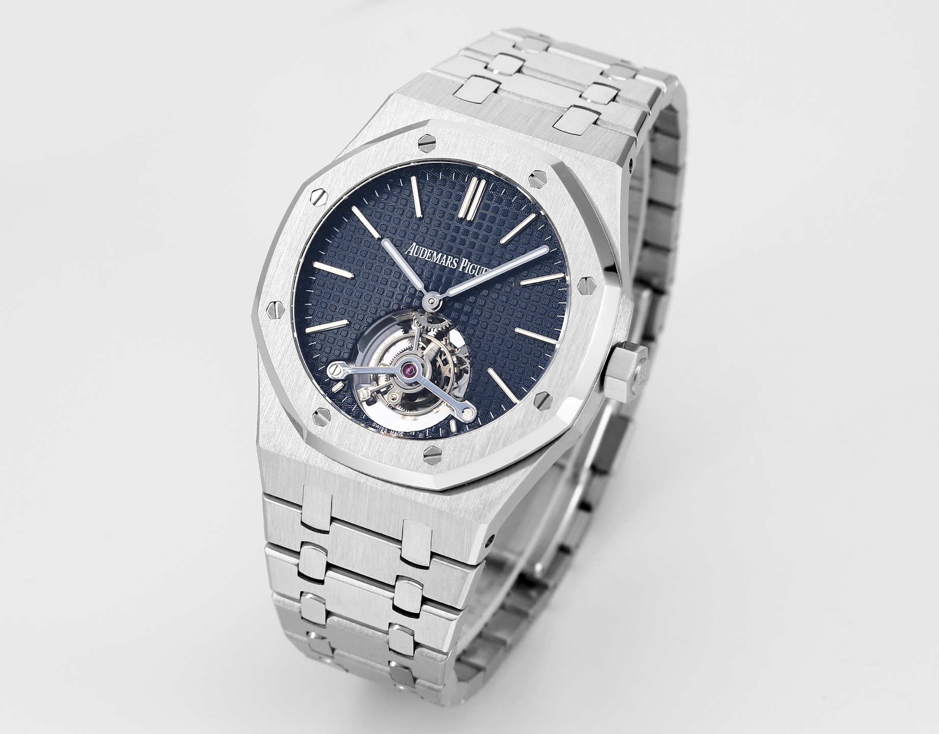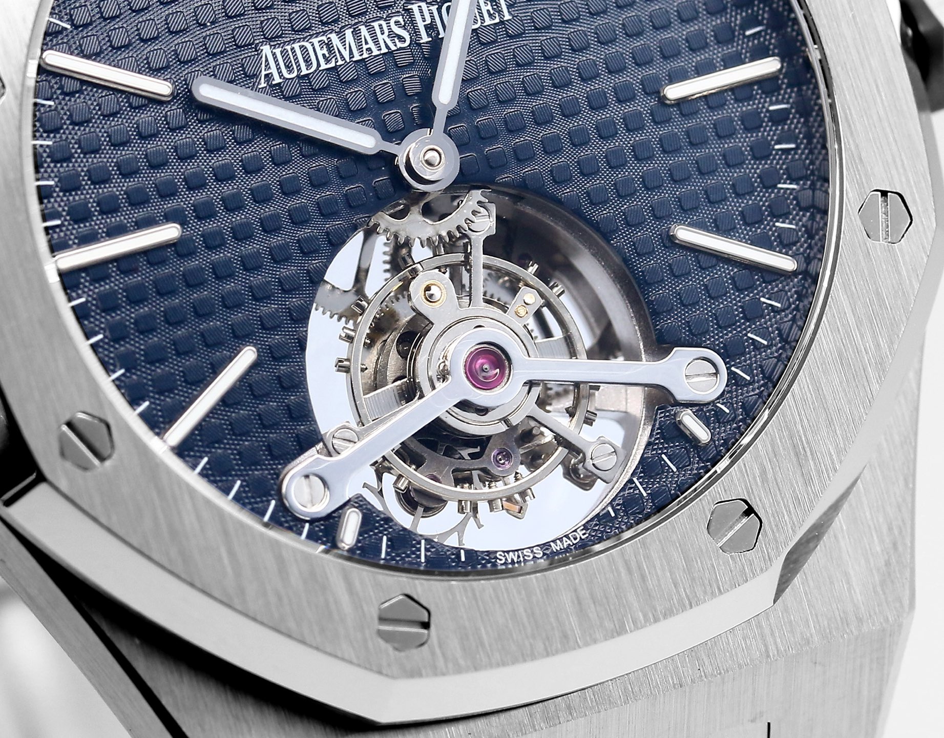 Retaining Audemars Piguet's signature octagonal bezel, iconic hexagonal screws, and classic bracelet, the Royal Oak Ultra-Thin Tourbillon reimagines the traditional “Tapisserie” pattern with the innovative “Tapisserie Evolutive” motif. The familiar yet fresh dial pattern decoration delivers a novel visual experience, serving as the crowning touch of this timepiece. With a case diameter of 41mm and a thickness of 11.2mm, this exceptional tourbillon has garnered widespread admiration and attention from watch enthusiasts.