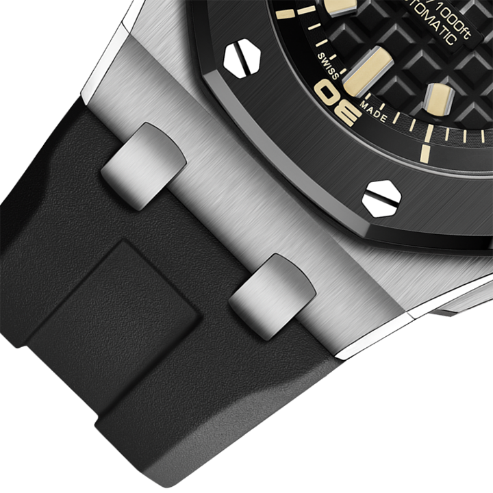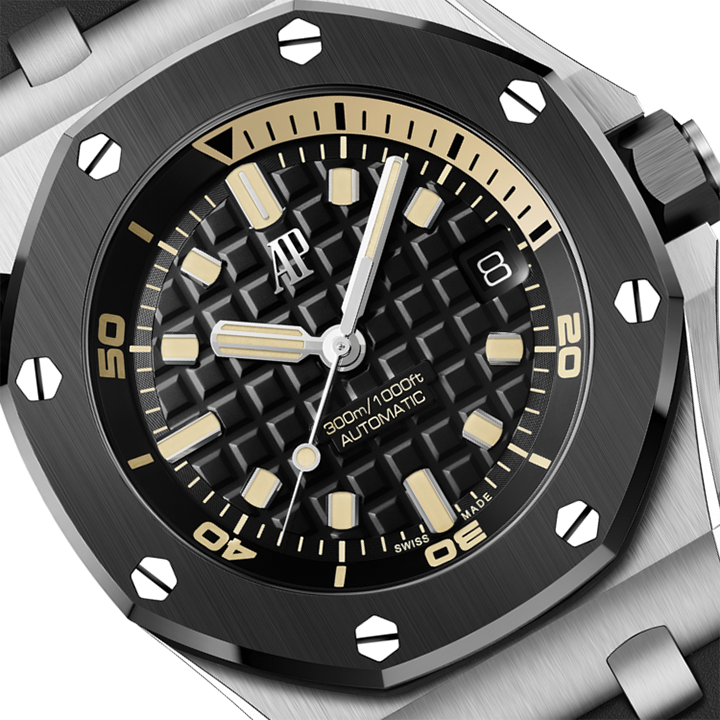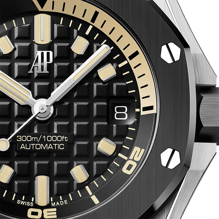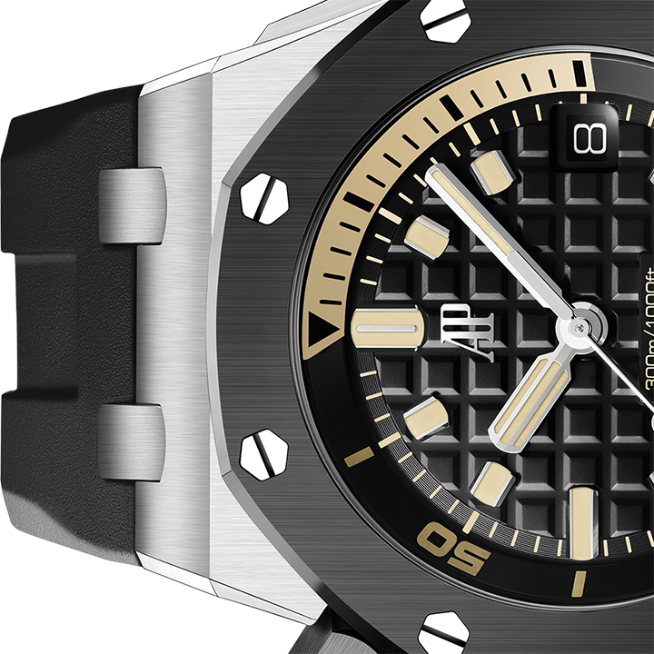 This limited edition of 300 pieces combines 18-carat white gold with black ceramic. It also sports the latest selfwinding movement, Calibre 4308, the new interchangeable strap system and a dial aesthetic fit for the greatest adventures. Available in selected Audemars Piguet Boutiques