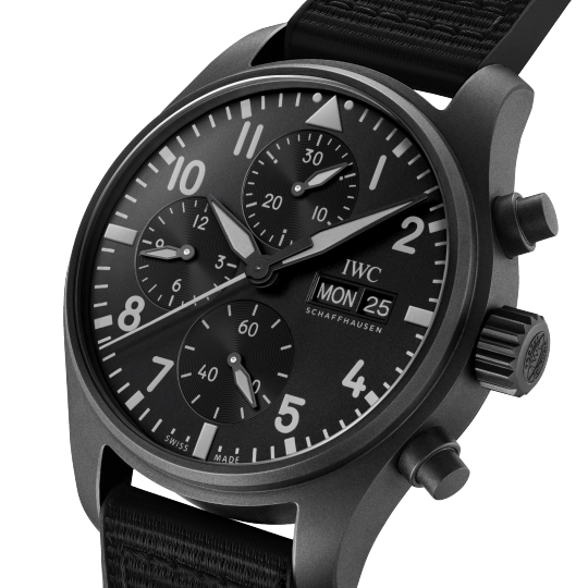 Ceratanium® case, Automatic, self-winding, Diameter 41.0 mm, Black dial with luminescence, Black rubber strap with textile inlay , Strap width 20.0 mm.