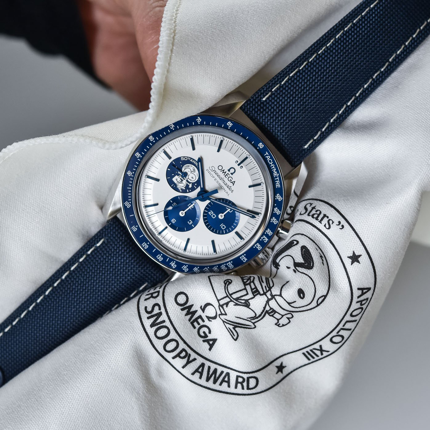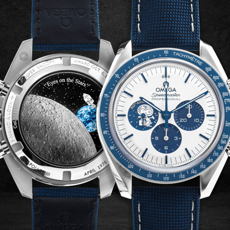 This 50th anniversary timepiece pays tribute to the “Silver Snoopy Award” that OMEGA received from NASA astronauts in 1970,
