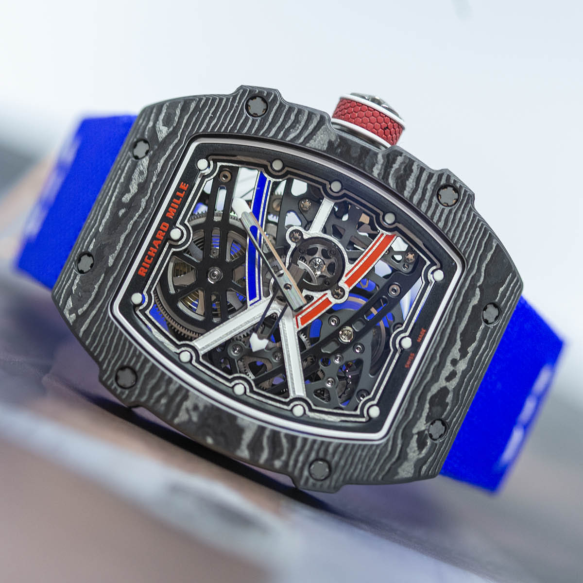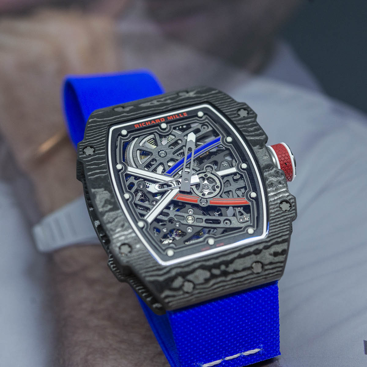 Thin, lightweight, coloured, elegant and athletic, the RM 67-02 is the watch for any situation. Breaking with precedent, Richard Mille designed this model so that it can be adapted to various sporting disciplines. This is why several of the brand’s partners have had developed an RM 67-02 in the colours of their respective countries, so as to test the abilities of this automatic calibre in a range of settings.