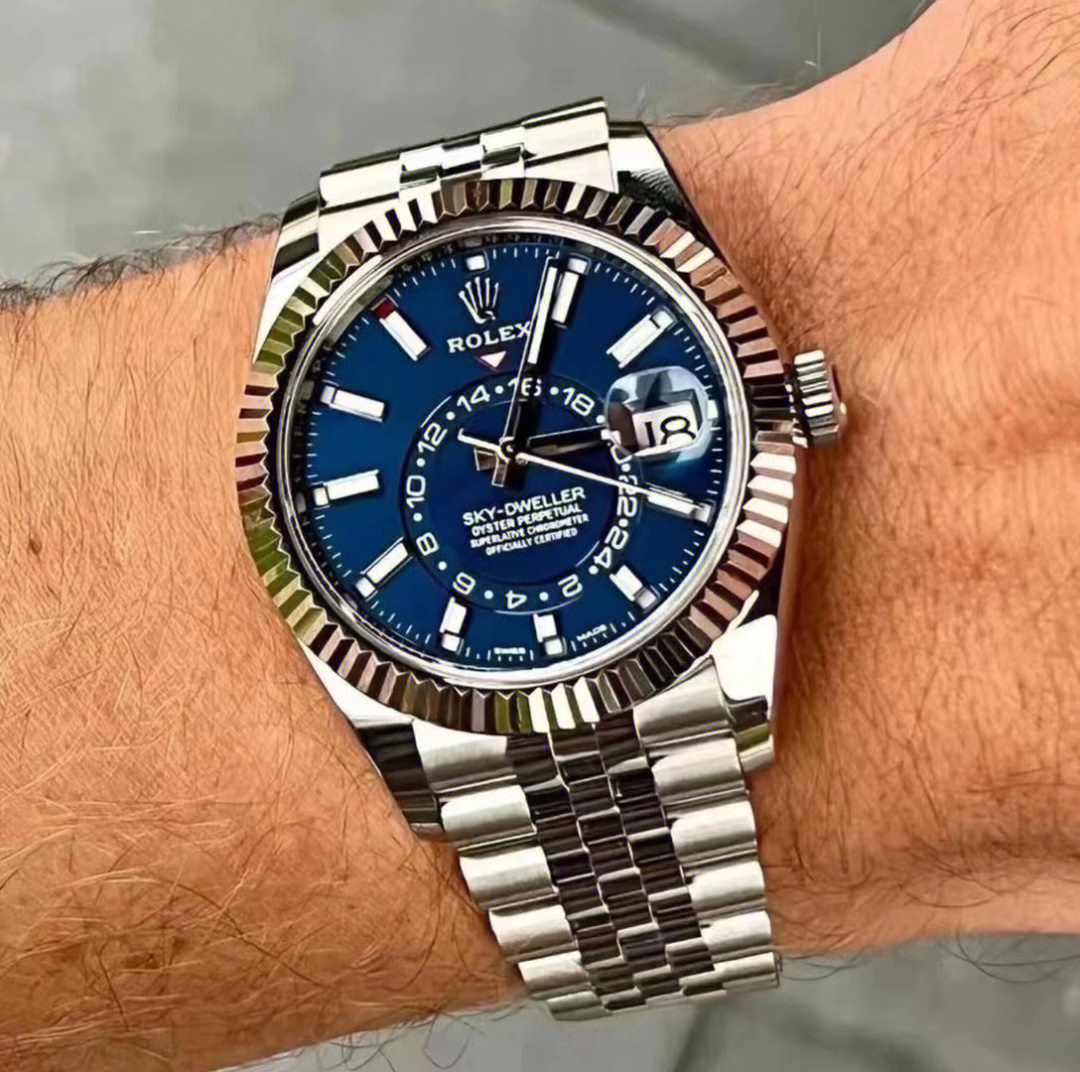 THE OYSTER PERPETUAL SKY-DWELLER IN OYSTERSTEEL AND WHITE GOLD WITH A BRIGHT BLACK DIAL AND A JUBILEE BRACELET.
