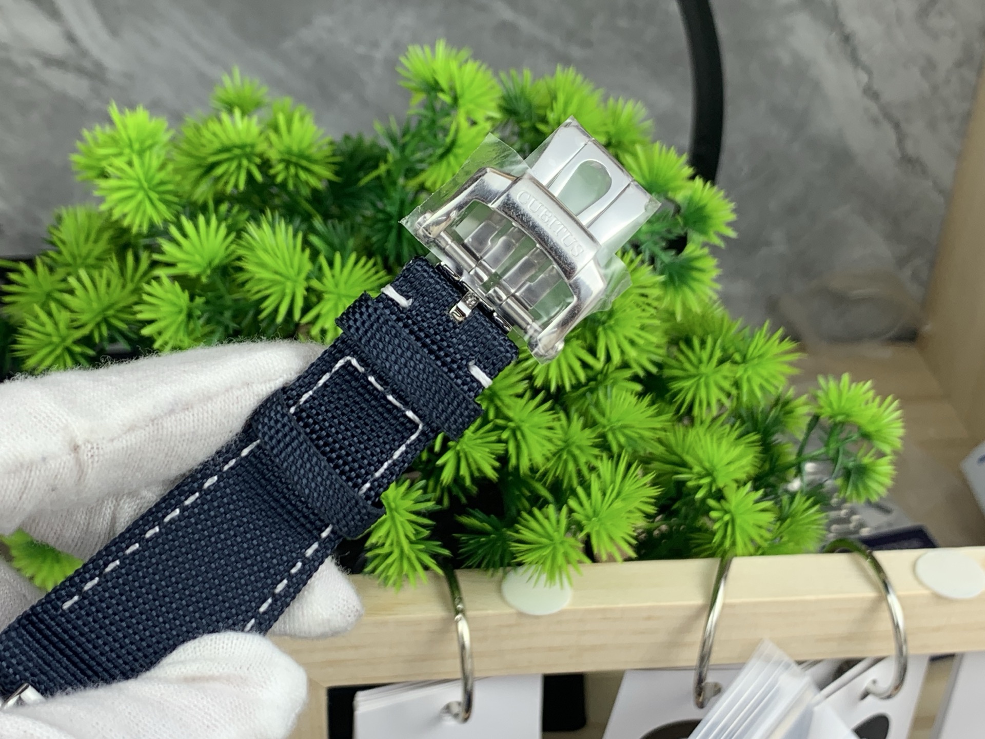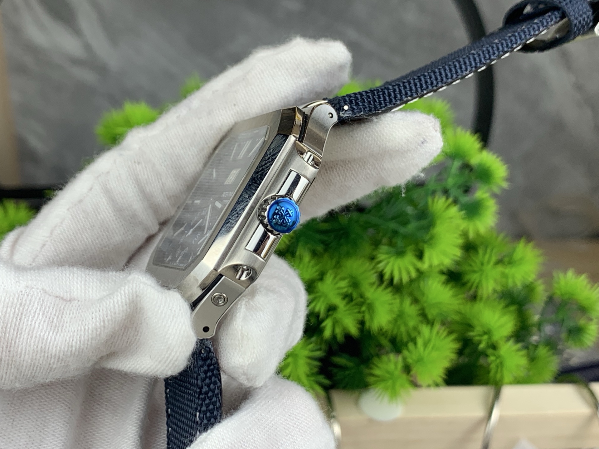 Powered by the 240 PS CI J LU automatic movement, this timepiece is a refreshed version of the classic 240 movement, comprising 353 parts and holding six patents. Through an 18-millisecond synchronized instantaneous jump mechanism, it achieves precise simultaneous changes in date, day of the week, and moon phase, maintaining a timekeeping accuracy of -1 to +2 seconds per day, with a power reserve of 38-48 hours. Paired with a navy blue composite textured strap, it complements both the sophistication of formal wear and the relaxed feel of casual styles, making it a landmark piece combining haute horlogerie technology and avant-garde aesthetics.