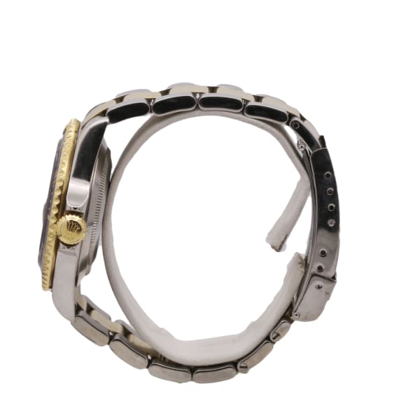 Pre-owned Rolex Submariner, reference #16613, 40mm, 18k Yellow Gold and Stainless Steel Watch. Blue Dial, unidirectional rotating Solid 18k Rolesor Yellow Gold Bezel with Blue Cerachrom Ceramic Bezel Insert, polished solid 18k Rolesor yellow gold with brushed 904L Oystersteel stainless steel Oyster bracelet. The watch comes with an aftermarket watch box and a 3-year store warranty from Diamond Source.